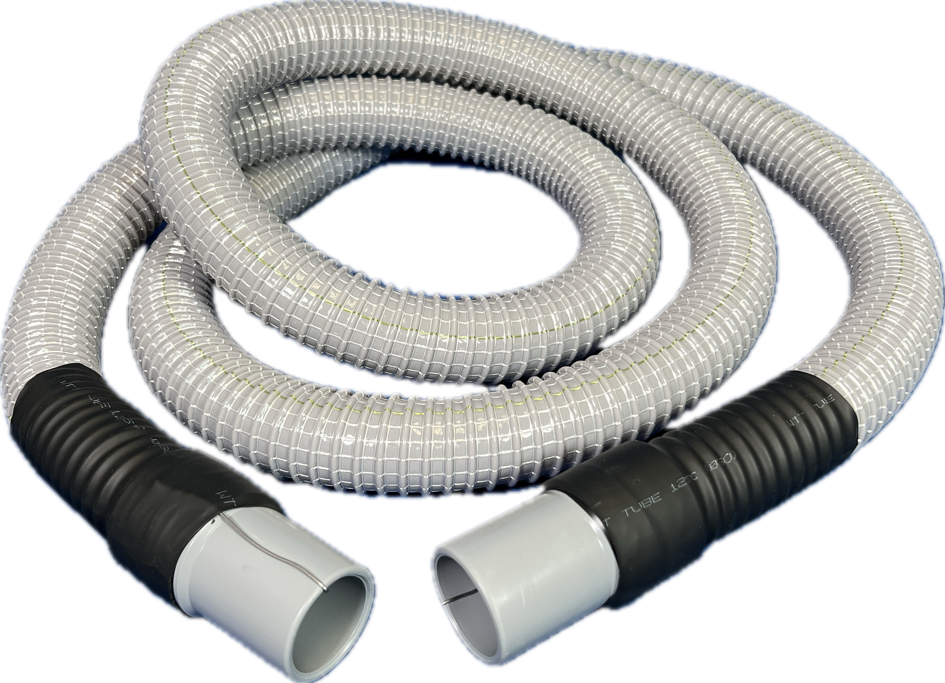 2" Flexible Plastic PVC Grounded Vacuum Hose with Cuffs, Gray Color, 10', 15', 25' and 50' Lengths Available, Fits Non-Latching Inlet Valves, Equivalent to Gardner Denver® AFW7520101, AFW7520151, AFW7520251, AFW7520501